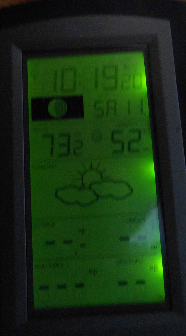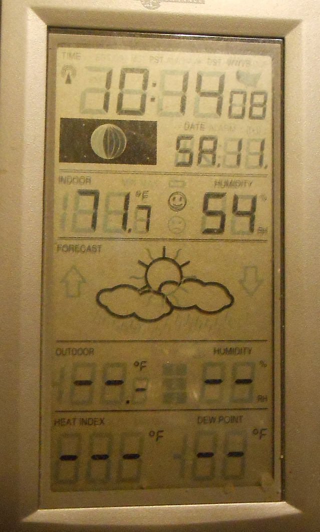 The Weathertech FX 5000 is a handsome desktop unit that displays indoor & outdoor temperature and humidity along with a clock and calendar (displays day & month) and moon phase indicator. It also comes with a wireless outdoor temperature & humity sensor. It also displays the heat index & dew point (the temperature at which fog is likely to form).