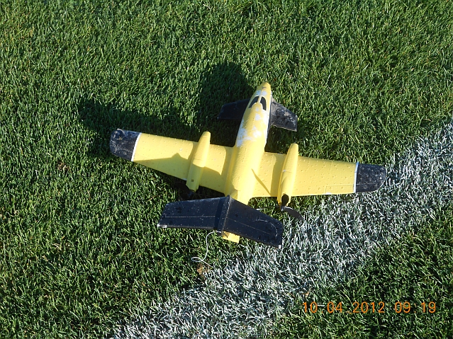 During my rather brief flight on 10-03-12 (very brief primarily because of high winds), I took the following photograph of its landing: