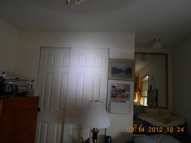 Beam photograph (flashlight mode) on a wall at ~10 feet.