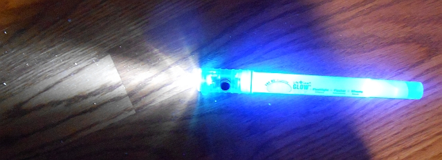 Photograph of the flashlight & blue LED "glowstick" on simultaneously (at the same time).
