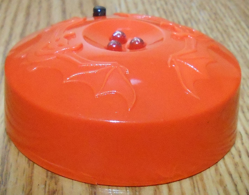 It comes in an orange, pumpkin-colored plastic case, and has three white LEDs that are responsible for the spooky lighting effects.