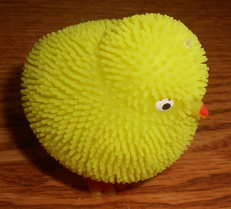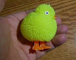 This is a soft, rubbery inflated chick (a baby bird, NOT a curvacious girl!) specicially designed to be sold shortly before Easter.