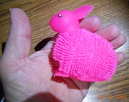 One thing I noted almost right away: the sodding phoney-bologna fake rubbery inflated stupid dead bunny has a fairly strong 'chemical' or 'solvent' odour to it if you hold it anywhere even CLOSE to your nose.