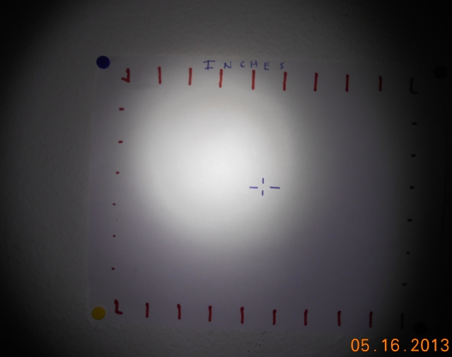 Beam terminus photograph of the PhosForce on a wall at ~6 feet (~1.5 meters).