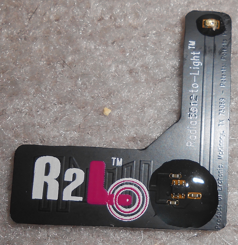 On the R2L website, it states (and I quote): "Paper thin microprocessor converts cell phone radiation into harmless light".