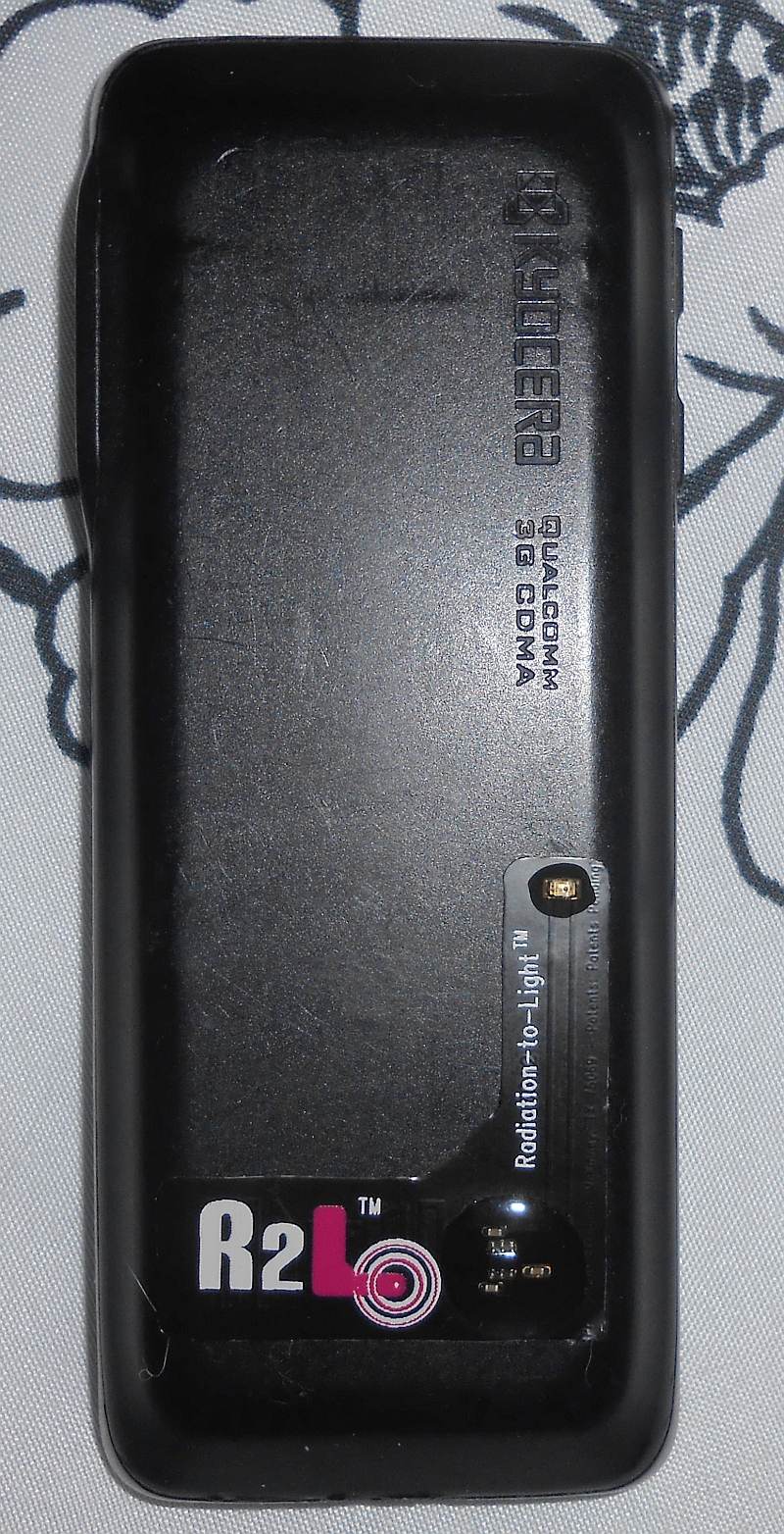 This is the R2L affixed to the back of my Kyocera Jax S1300 cellular telephone handset.
