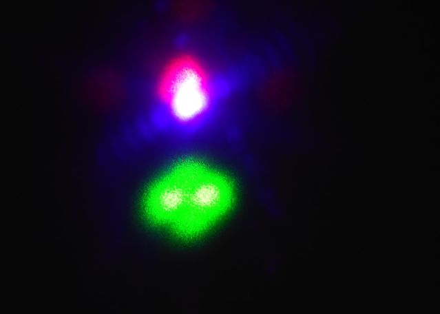 "White" (all three beams combined) beam 'comes apart' at distance -- and ***POOF!!!*** there goes another!