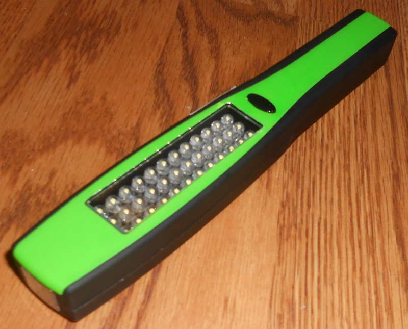The LED Flashlight/Work Light (1) is a somewhat unusual looking but ultimately useful little light that has 36 wide-angle white LEDs in the handle, four garden variety white LEDs in the head, and uses four AAA cells (included) to power those LEDs with.