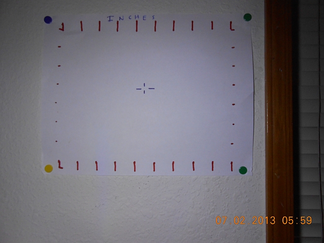 Beam photograph (work light mode) on a wall at ~10 feet.