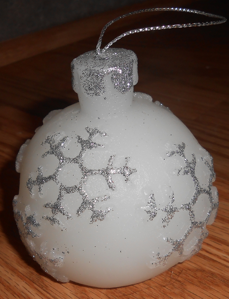 This is a Christmas ball (Christmas tree ornament) that is made of wax and flickers like a real candle, but there is no messy dripping wax, no flame, no smoke, no messy soot, and no odour. They are battery-powered & can be turned on and off at will; you do not need to have a "siggeret" lighter on you or nearby.