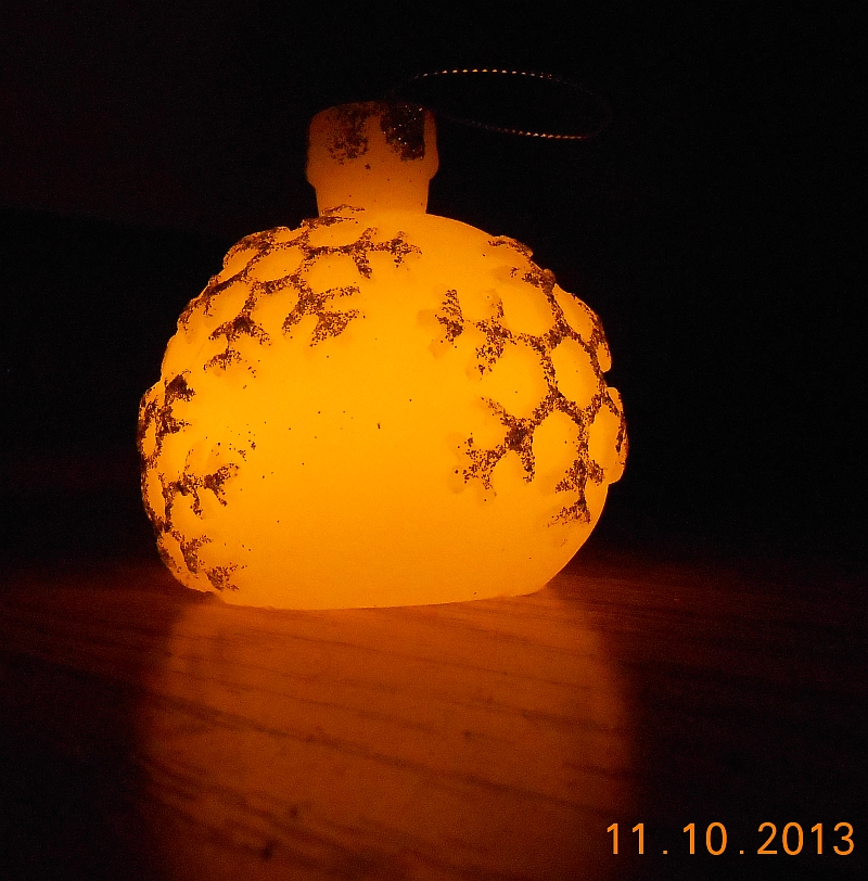 Photograph of the Flickering Wax LED Ornament, "illuminurinated" of course.