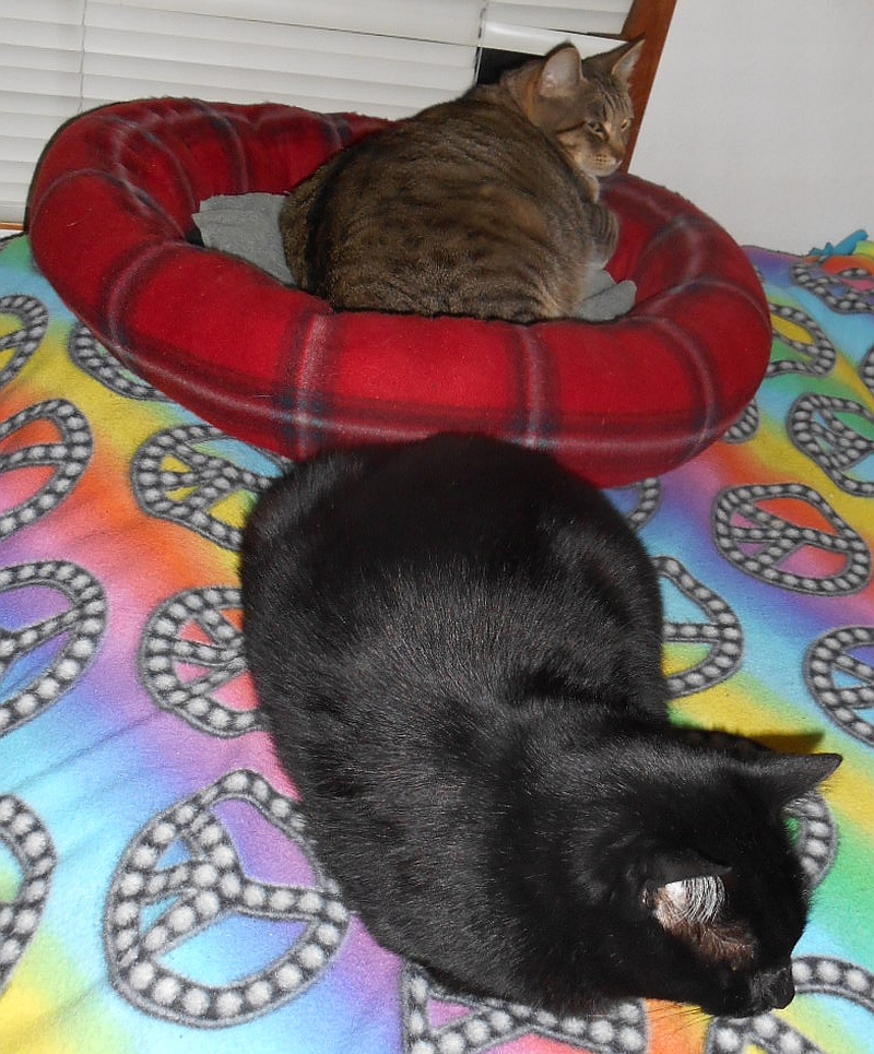 This pic of Stormy sharing my bed with my special little furkid Nikki was taken on the evening of 01-27-14.