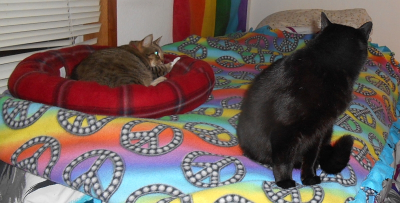 This pic of Stormy and Nikki on my bed together was taken on the evening of 02-06-14.