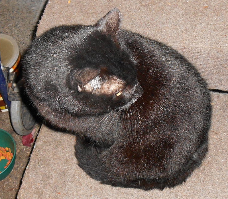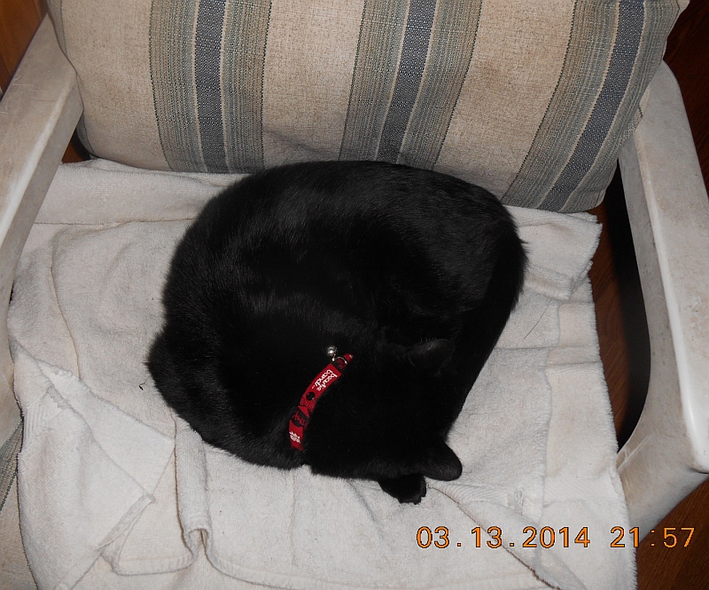 This pic shows Stormy on my aunt's porch curled up in a patio chair.