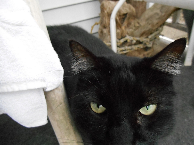 This pic simply shows Stormy coming out from under my chair on my aunt's front porch.