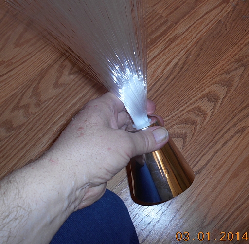 Brief video showing the Fiber Optic Vibrating Light in operation using my Galileo Thermometer's base as its light engine.