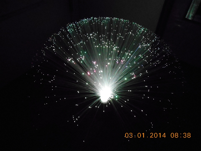 A fiber optic lamp changing colors, spinning, and buzzing!
