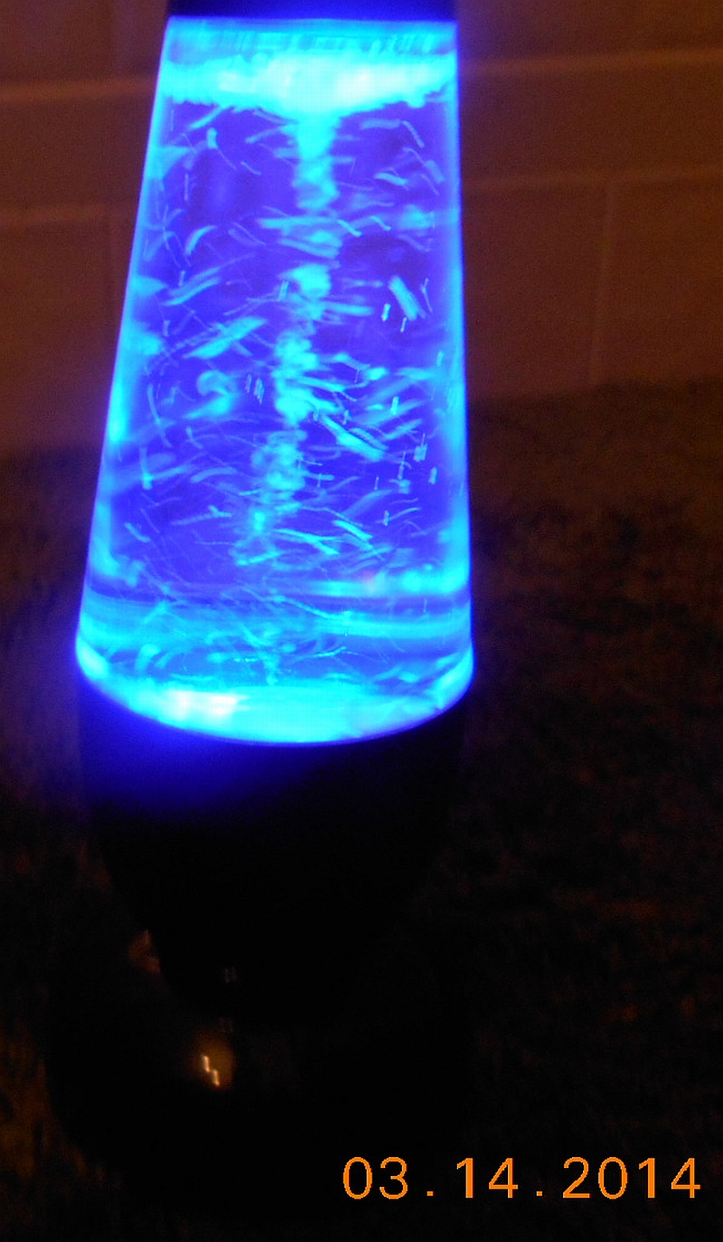 This is a decorative mood lamp intended to be used in a dry area indoors, not a flashlight meant to be thrashed, bashed, trashed, and abused. So I won't try to drown it in the toliet tank, bash it against a steel rod or against the concrete floor of a carport in effort to try and expose the bare Metalmarineangemon - er - the bare Metaltrailmon - um that's not it either...the bare Metalparrotmon...er...uh...wait a sec here...THE BARE METAL (guess I've been watching too much Digimon again! - now I'm just making {vulgar term for feces} up!!!)... O WAIT!!! WHERE'S THE METAL?!?, let my mother's big dog's ghost, her kitties, my kitty or my sister's kitty cat piddle (uranate) on it, hose it down with my mother's gun, run over it with a 450lb Quickie Pulse 6 motorised wheelchair, stomp on it, use a small carpenter's hammer (claw hammer) in order to bash it open to check it for candiosity, fire it from the cannoñata, drop it down the top of Mt. Erupto (now I guess I've been watching the TV program "Viva Piñata" too much again - candiosity is usually checked with a laser-type device on a platform with a large readout (located at Piñata Central {aka. "Party Central"}), with a handheld wand that Langston Lickatoad uses, or with a pack-of-cards-sized device that Fergy Fudgehog uses; the cannoñata (also located at Piñata Central) is only used to shoot piñatas to piñata parties away from picturesque Piñata Island, and Mt. Erupto is an active volcano on Piñata Island), send it to the Daystrom Institute for additional analyses, or perform other indecencies on it that a flashlight might have to have performed on it. Therefore, this section of the Color-Changing Twister Light's web page will seem a bit more bare than this section of the web page on a page about a flashlight.