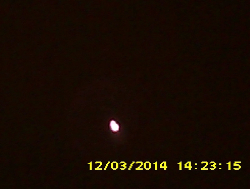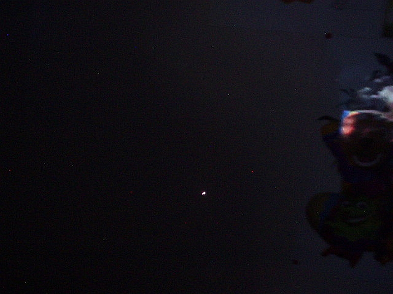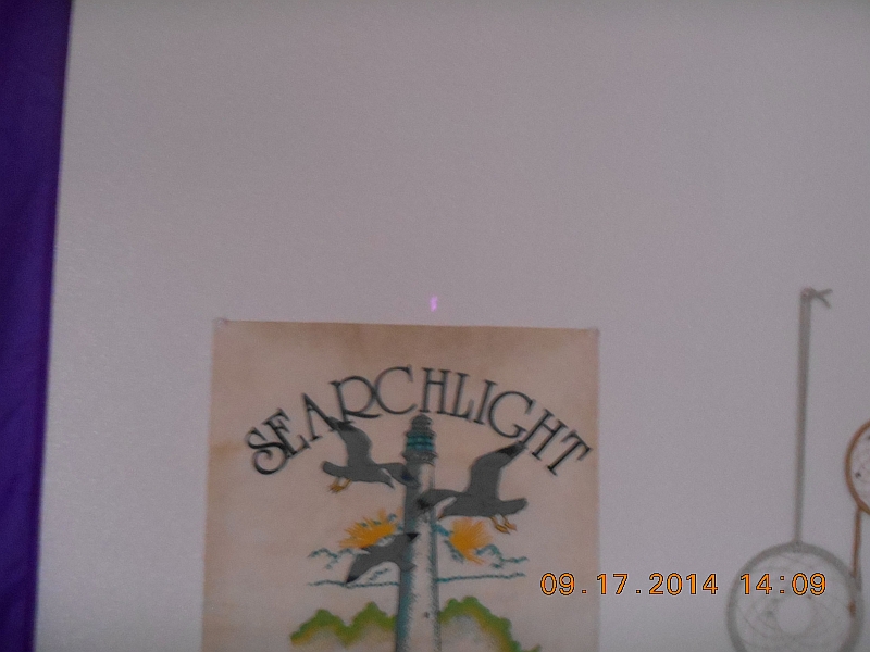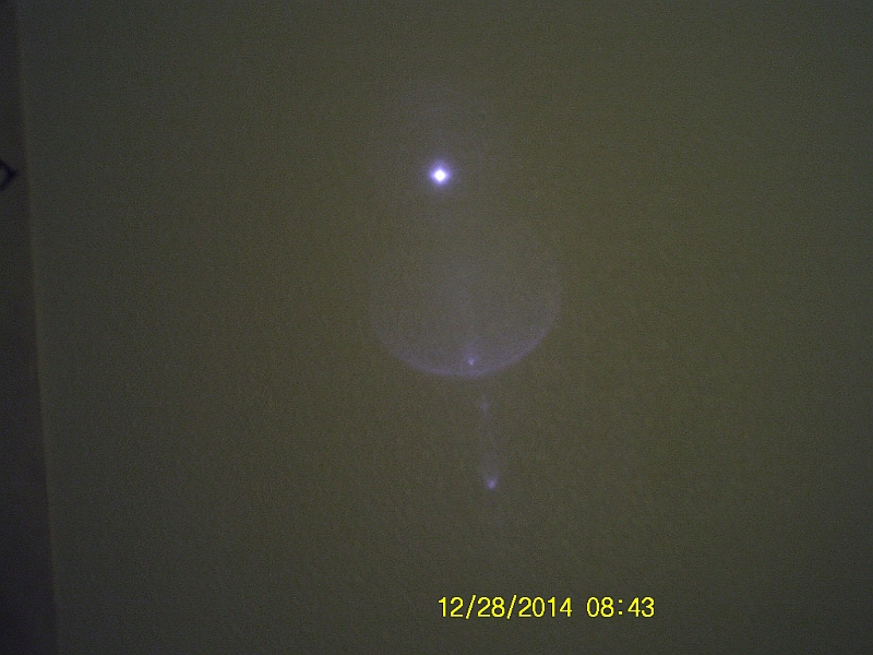Beam terminus photograph on a wall at ~2 feet (~0.6096 meters); the camera in my UDI U13A R/C Camera Helicopter was used.