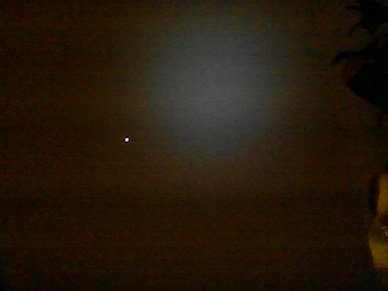 Beam terminus photograph on a wall at ~2 feet (~0.6096 meters); the Rechargeable Mini Keychain Video Recorder was used.