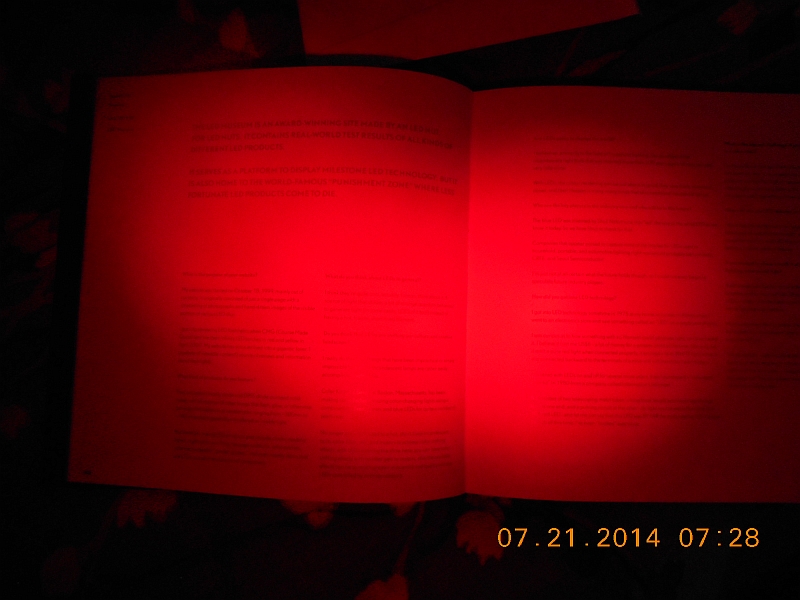 Spectrographic analysis of the LEDs in this reading light (red filter).