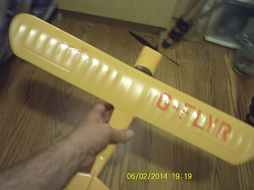 The control arm for the rudder has become broken; this studly little yellow airplane can no longer be steered and is therefore unflyable -- though I am attempting a repair.