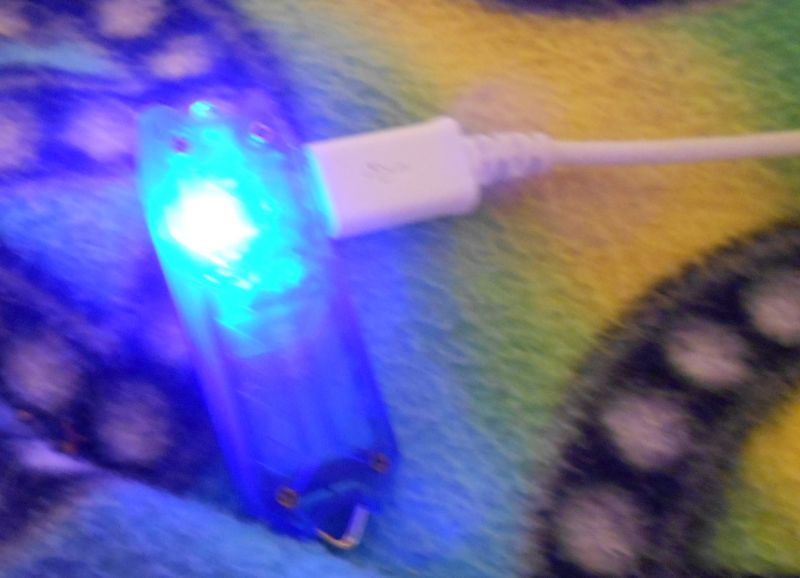 Pic showing the blue, "Charge cycle in progress" LED.