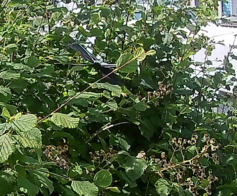 Photograph of the Swing stuck in a high bush after the wind blew it there on 06-20-18; however I was rather easily able to retrieve it with a conveniently-placed poal saw.