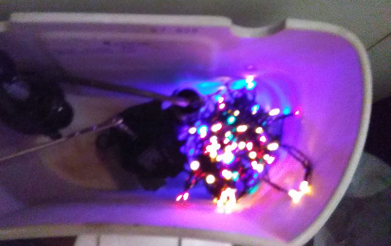 I apologise for the inferior quality of this photograph of the lights in the cistern (toliet tank); my last decent camera was on a drone that went down in late-June 2019 and was rather surprisingly quickly stolen.