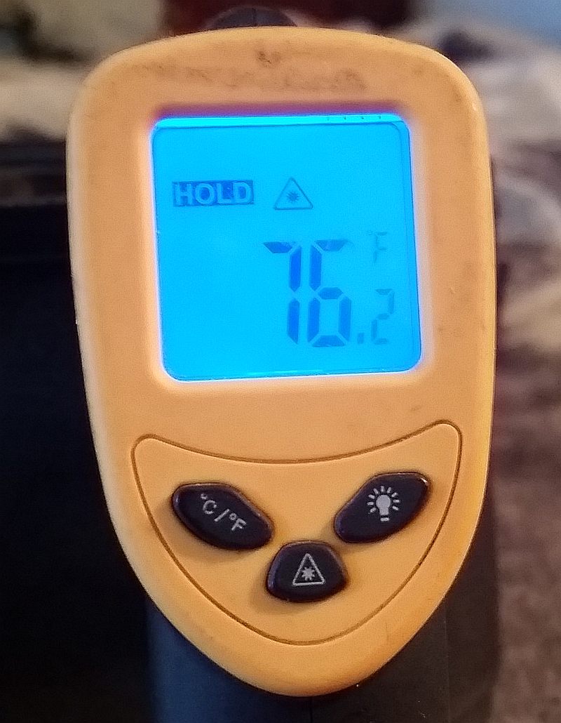 The Etekcity Lasergrip 774 Noncontact IR Thermometer is a thermometer used to measure the temperature of surfaces without your having to touch them for any reason (too hot, too cold, too many "germs", dangerous moving parts nearby, etc.).