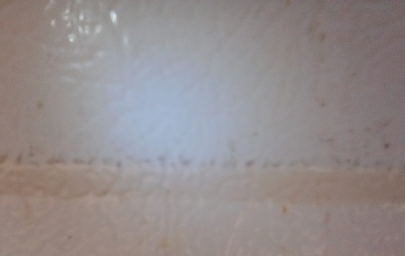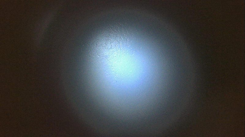 Beam terminus photograph (LED) outdoors against the side of a white stove at ~5".
