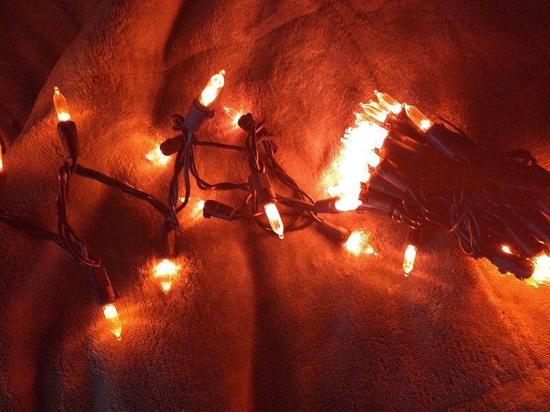 The Halloween 100 LED Mini Lights (Orange) is just what they are called: a set of 100 orange LEDs that come in miniature incandescent-style housings that runs off mains power; they're specifically marketed to be deployed in and around your home as part of Halloween decorating (as if the all-orange lights didn't already clue you in) ;-)