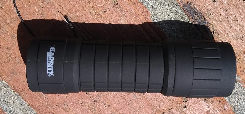 The Garrity COB is a small handheld LED flashlight that uses a phosphor white COB (Chip On Board) LED, feeds on three AAA cells contained in a side-by-side carriage in the barrel, and comes in a plastic-coated all-aluminum body.