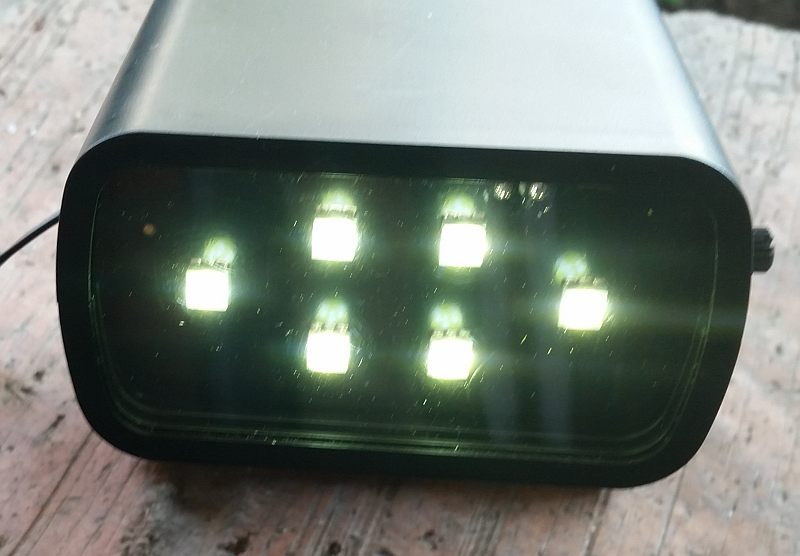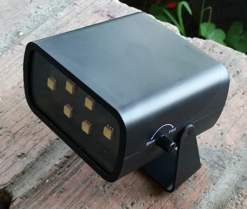 The rather imaginitively named (cough, sputter, sound of a toliet flushing) Strobe Light is a smallish box that features six intense 3-die phosphor white LEDs that flash at speeds that are user-defineable via an easily accessible (variable resistor) on one side of the product.