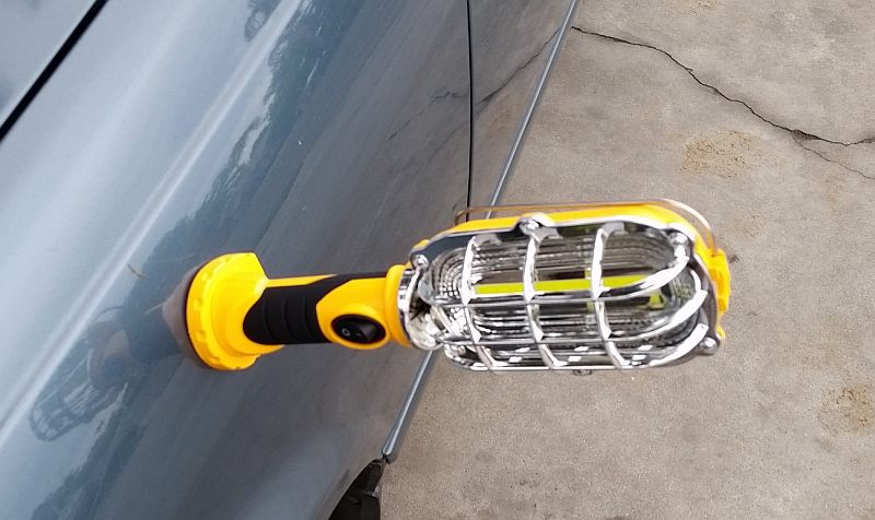 Work light shown magnetically affixed to the side of my landlady's automobile.