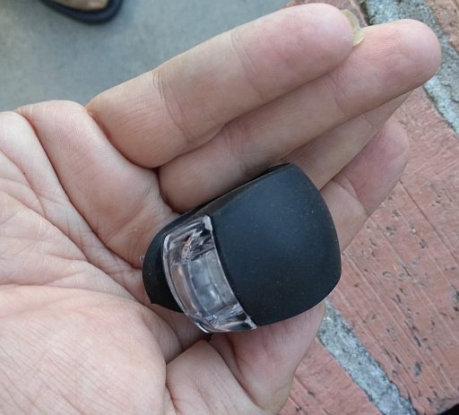 This is a bicycle light in a plastic body, not a flashlight in a metal body that's meant to be bashed, thrashed, trashed, and abused, so I won't bash it against a steel rod or against the concrete floor of a porch, run over it with a 450lb Celebrity motorised wheelchair, stomp on it, use a large claw hammer in order to smash it open to check it for candiosity, fire it from the cannoñata (I guess I've been watching the TV program "Viva Piñata" too much again - candiosity is usually checked with a laser-type device on a platform with a large readout, with a handheld wand that Langston Lickatoad uses, or with a pack-of-cards-sized device that Fergy Fudgehog uses; and the cannoñata is only used to shoot piñatas to piñata parties away from picturesque Piñata Island), send it to the Daystrom Institute for additional analysis, or perform other indecencies on it that a flashlight in a metal or sturdier plastic body might have to have performed on it. So this section of the web page will be a bit more bare than this section of the web page on a page about a flashlight that was born to be a flashlight and nothing but a flashlight.