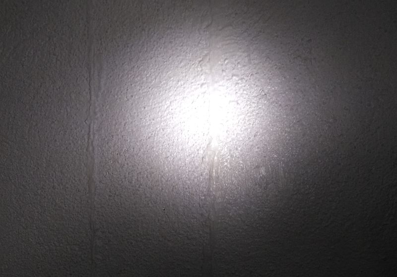 Beam terminus photograph on a wall at 12" (all LEDs on).