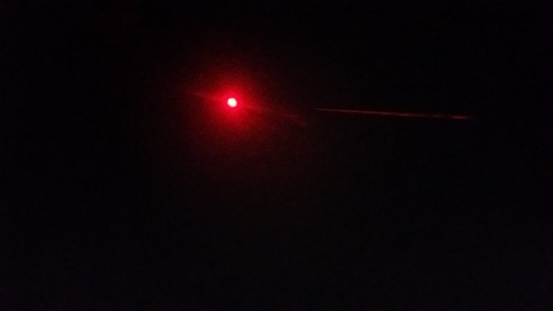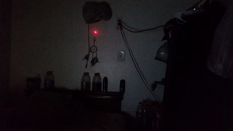 Beam terminus photograph (laser) on a wall at ~10 feet.