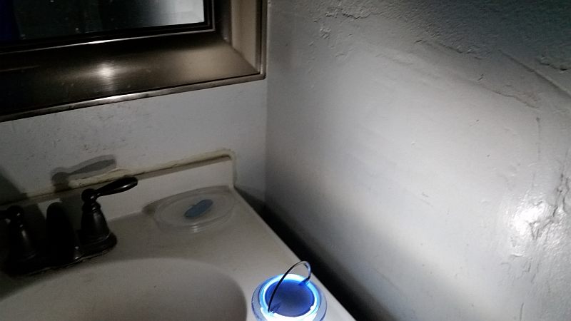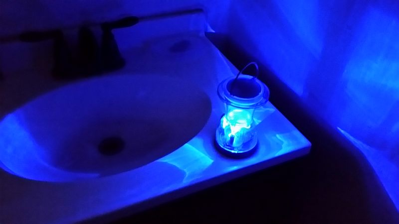 Lantern shown lighting up the vanity in my bathroom (blue LED).