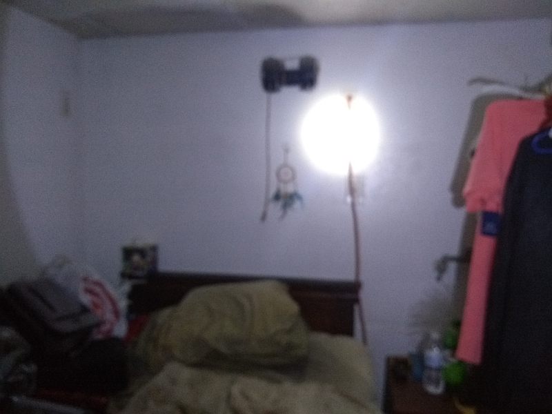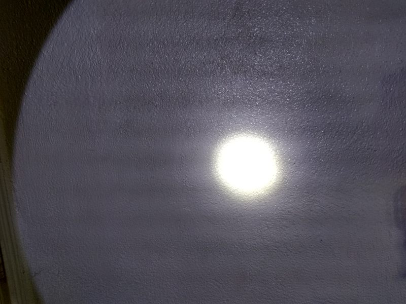 Beam terminus photograph (primary LED) on a wall at ~8 feet.