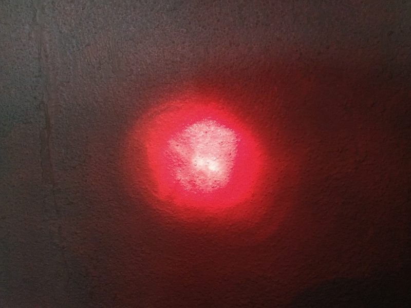 Spectrographic analysis of the LEDs in this bicycle taillight; spectrometer's response narrowed to a band between 620nm and 640nm to pinpoint emission peak wavelength, which is 630.330nm.