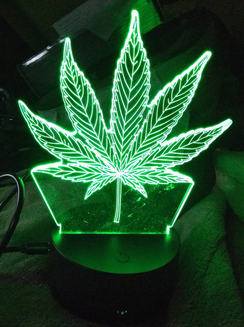 The Creative 3D Visualisation Lamp (Pot Leaf) (hereinafter probably just called the, "marijuana lamp" or the, "pot lamp"; but sold as a "maple leaf" lamp on the wish.com website) .