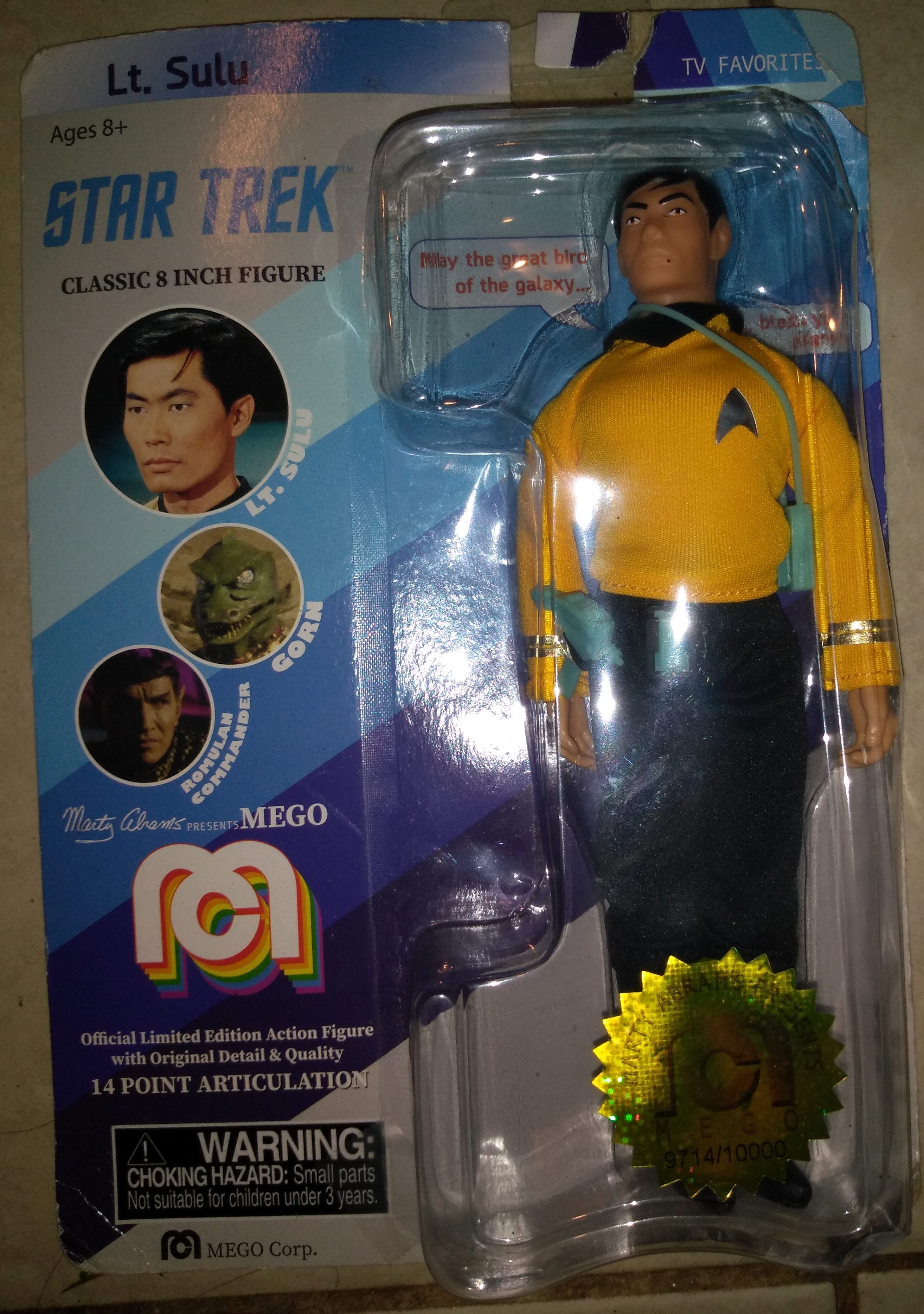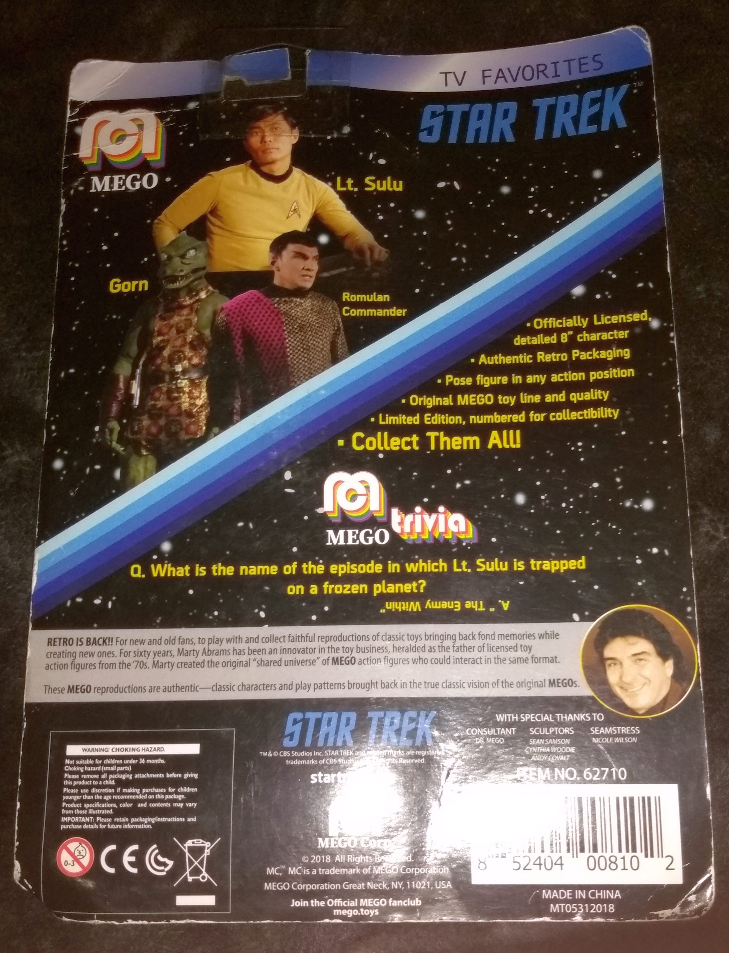 Front of the package, showing the Sulu action figure (aka. boy's doll).