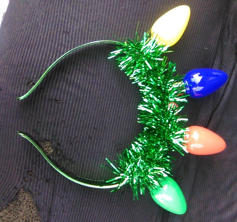 This is a novelty headband designed to look like a string of Christmas light bulbs.