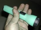 The entire unit is built into a Garrity Glo Lite body, and looks just like one until you turn it on. Because this light uses a near-UV (NUV) LED, you should try not to shoot it into your eyes, or into the eyes of anyone else nearby. You only come with one pair of them, and it's not like you can just bop on down to the local 7-11 for a new set when you burn out the first pair.
