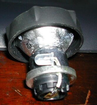 As you can see above, there is a second NUV LED inside the flashlight, mounted to the bottom of the lampholder and facing outward. This LED receives only a few milliamps, so it doesn't drain the battery nearly as much as the main, reflectorized LED does.