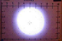 This picture shows just how sharp edged the beam really is. You will also notice that the entire perimeter of the beam is a very thin, very blue ring; while the entire area inside