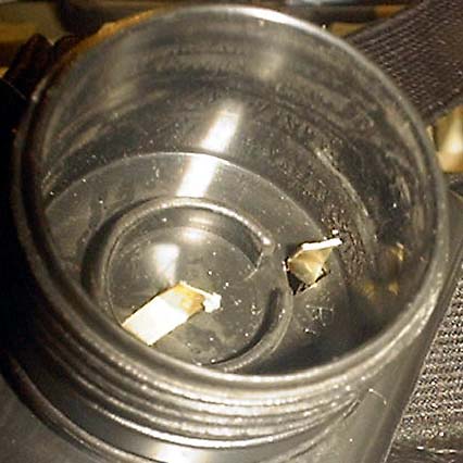 The battery compartment was FULL, and so was the flashlight head with the LEDs. And there goes a perfectly good catalyst pellet... flush!!