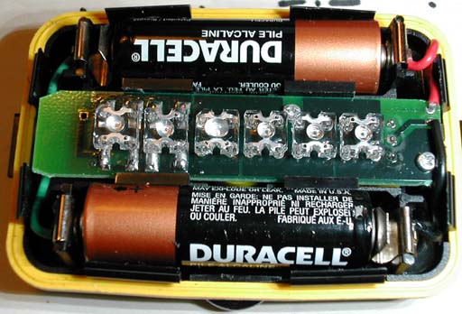 While the type of LED used in this mod is rated for 50 milliamps minimum, they are driven at 30 milliamps so as not to overtax the AA cells powering the whole thing.