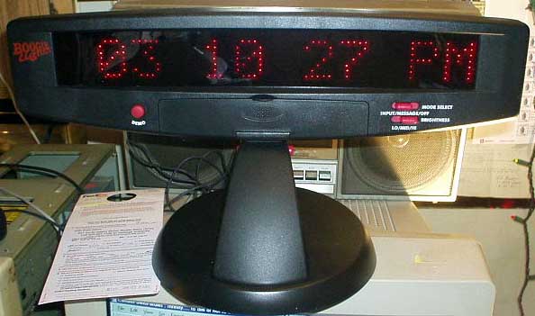 The Be-Boppin' Boogie Lights is a scrolling LED message board, designed to scroll any of a number of "canned" message across a large LED matrix, or scroll a user-typed message of up to 60 characters. It also functions as a very large digital clock, providing hours/minutes/seconds and AM/PM indication.
